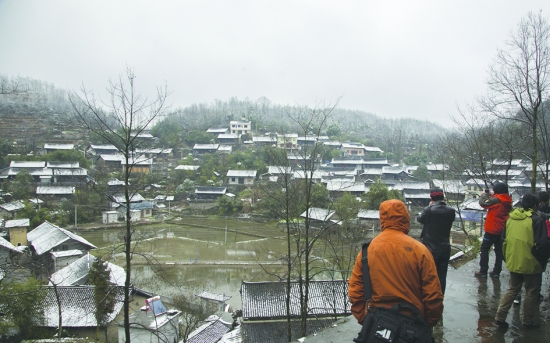 2月23日,花垣县双龙镇夯寨苗寨银装素裹,分外妖娆。 石林荣 摄