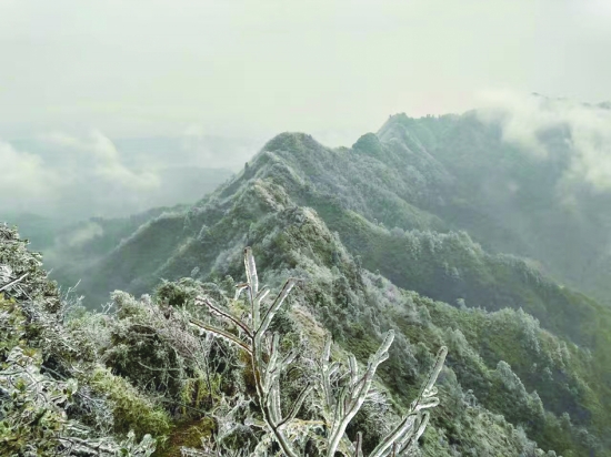 2月23日,泸溪县天桥山银装素裹,冰晶世界美如画。 向晓玲 李小勇 摄