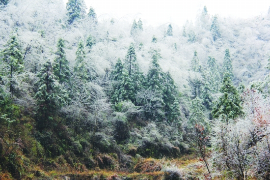 2月23日,凤凰县腊尔山高寒台地突降春雪和冰冻,一片“忽如一夜春风来,千树万树梨花开”景象。 滕建康 摄