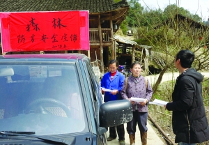 2月26日,龙山县咱果乡干部在给老百姓宣传防火安全知识。随着烧社和清明节临近,为扎实做好森林防火安全工作,该乡组织干部采用宣传车广播和发放宣传资料等形式,进村入寨开展宣传,着力打好防火安全“预防针”。 田志波 舒建建 摄