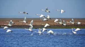在3月3日世界野生动植物日前夕,大批越冬候鸟聚集在湖南省东洞庭湖国家级自然保护区内准备北飞。每年10月份开始,大批候鸟从北方南飞抵达洞庭湖区,其中一部分候鸟将在洞庭湖区稍作休整后继续南飞,另外一部分候鸟则留在洞庭湖区越冬,直到第二年春天再陆续北飞迁徙。在今年1月份进行的环洞庭湖越冬水鸟同步调查中,调查人员监测到越冬水鸟6目12科54种共18万多只,数量创下2006年启动环洞庭湖越冬水鸟同步调查历年之最。