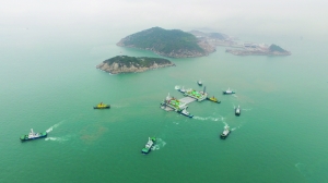 海上编队护送安装船队至施工海域(3月6日摄)。