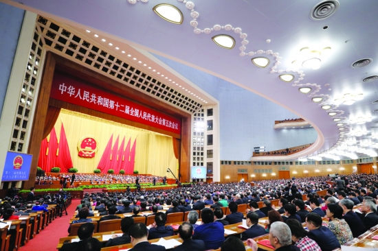 3月15日,第十二届全国人民代表大会第五次会议在北京人民大会堂举行闭幕会。 新华社记者 谢环驰 摄