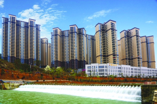 建设中的溶江小区和万溶江风光带。