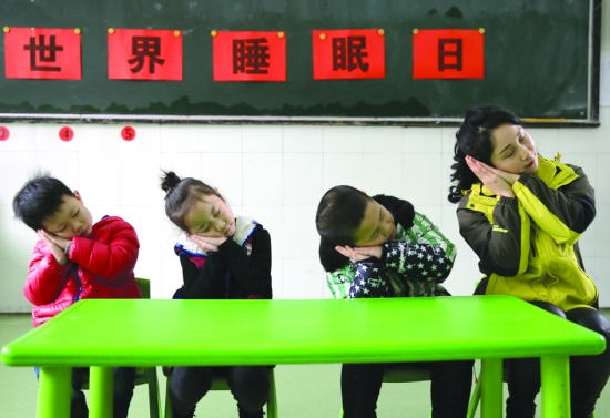 3月21日是第17个“世界睡眠日”,吉首市思立幼儿园开展“世界睡眠日”主题活动,对小朋友宣传普及睡眠知识,学会科学睡眠。 彭 彪 摄 娃娃学睡眠