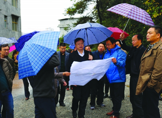 州委常委、州委宣传部部长、龙山县委书记周云为城区新学校选址。