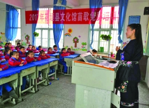 3月21日,花垣文化馆深入花垣小学开展“民族文化进校园”活动。 在县文化馆辅导员的指导下,孩子们正在认真地学唱苗歌。