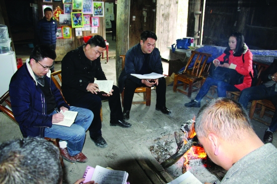 安监局扶贫工作队员深入驻点扶贫村洞乍村和老百姓座谈。
