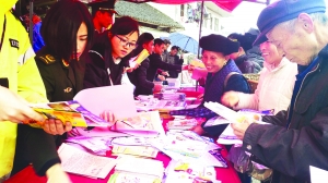 3月24日,花垣县综治委、禁毒委、检察院、610办、公安局、消防大队、国税局、教体局、民政局、计生局等13个单位联合在石栏镇开展综治宣传月活动。通过悬挂条幅、发放传单和宣传手册、讲解员解说政策、组织村干部集中参观学习等方式,增强广大群众的法制观念、自我防范能力,有效促进活动深入开展。 彭 涛 摄