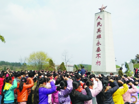 3月31日,花垣县吉卫镇民族小学1154名师生来到该县爱国主义教育基地吉卫革命烈士陵园前,敬献花圈与鲜花,并庄严宣誓,表达对先烈的沉痛悼念和缅怀之情,激发学生爱国情怀。 龙实夫 龙海燕 龙建梁 摄