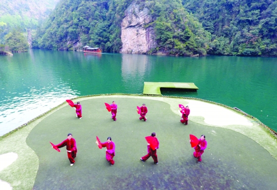 乐享清明小长假 4月3日,太极爱好者在湖南张家界宝峰湖风景区练太极。 清明小长假,各地开启踏青赏花、游玩休闲模式。人们走到户外,亲近自然,运动健身,放松身心。 新华社发(吴勇兵 摄)
