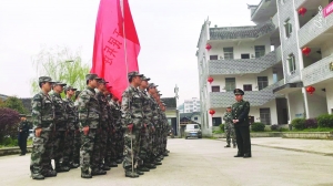3月29日,保靖县人武部进行民兵整组点验,强化县乡村三级民兵应急队伍编成。图为该县水田河镇基干民兵连接受上级点验。 张小兵 贾志国 摄