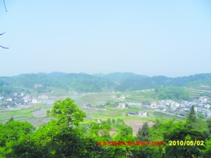 龙绕金山,坪展良田。载福地,七姓相安。同建同治,处处桃源。有李家寿,吴家富,众家甜。土生香米,棚种时鲜。路两旁,栋栋飞檐。夕阳西下,袅袅炊烟。听蛐儿鸣,蛙儿噪,雀儿喧。
