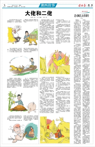 一天清早,二佬又去酉水河坎砍柴,刚砍了两根,想到自己的辛苦,就唉声叹气起来。一连叹了好几次。他正准备继续砍时,突然,一道金光扑面而来,飞来了一只会说话的金凤凰。