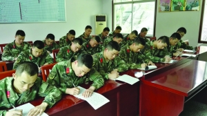 4月16日,武警吉首市中队官兵开展文化学习活动,通过练习字帖提升武警官兵的文化内涵。
