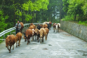 4月15日,凤凰县茶田镇都桐村村民舒修伍夫妇正赶着牛群到山上放养。2015年以来,舒修伍夫妇放弃外出务工,抓住有利的精准脱贫扶持政策,利用本村丰富的牧草资源,大力发展养牛业,开拓致富路。目前,能繁母牛存栏50多头,年底预计产仔100余头,按现行市场价计算,预计收入可达30万元以上。 欧介中 隆 杰 摄