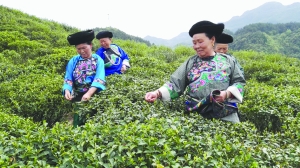 4月19日,花垣县石栏镇排吾村(夯彩村和小排吾村合并而成)村民正在茶山上采摘最后一批春季“云雾茶”。该村坐落在当地最高峰摩天岭山脚下,平均海拔700多米,因常年云雾缭绕,所以被誉为“云雾茶”。云雾茶叶肉细嫩柔软、叶色碧绿,茶汤色青翠明亮,滋味鲜醇、浓厚,有一股绿豆般的清香,深受消费者青睐。 杨 木 摄