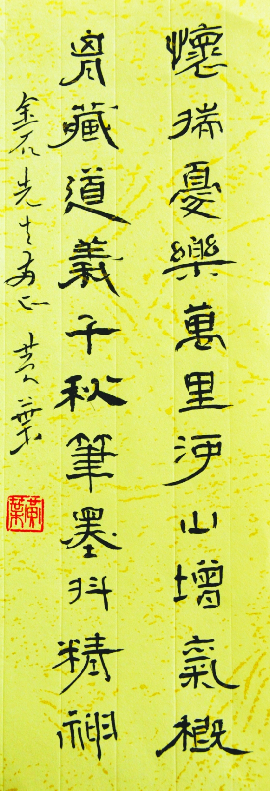 对联: 怀揣忧乐万里河山增气概 胸藏道义千秋笔墨抖精神