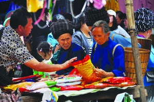4月23日,凤凰县腊尔山圩场上苗族农民正在选购玉米种子。谷雨至,耕种忙,农民纷纷前往农资经销摊点选购化肥、种子、地膜等农资,咨询一些播种知识,准备适时下种不误农事。近年来,政府出台“种粮给补贴,农业有保险”等优惠政策,农民种植积极性提高。 滕建康 摄