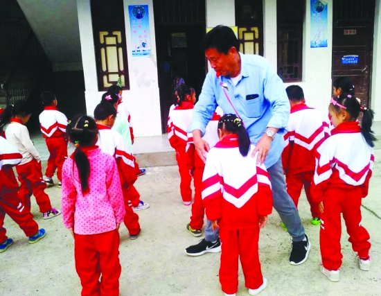 仲宝平在给孩子们上体育课