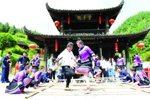 4月22日,在永顺县老司城的摆手堂前,该县土家族艺术团的演员们在为一批来自岳阳的游客表演文艺节目。自去年4月以来,该景区联手县土家族艺术团,着力打造文旅联姻模式,为景区注入文化内涵,提升景区的文化品位。游客来此,既可观景又可品文,激活了该景区的旅游发展。日前,随着天气晴好,老司城游客量渐渐回升。