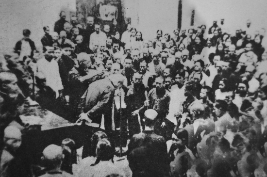 翻身农民开大会斗地主。