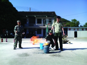 5月8日,永顺县中青班学员和民兵应急连队员在该县县委党校接受消防安全知识教育,通过消防知识专题讲座和实地演练,有效提高了干部职工的消防安全意识和自防自救能力。图为中青班一名女学员在县消防大队专业人员的指导下,勇敢沉着地扑灭燃烧着的液化气罐。