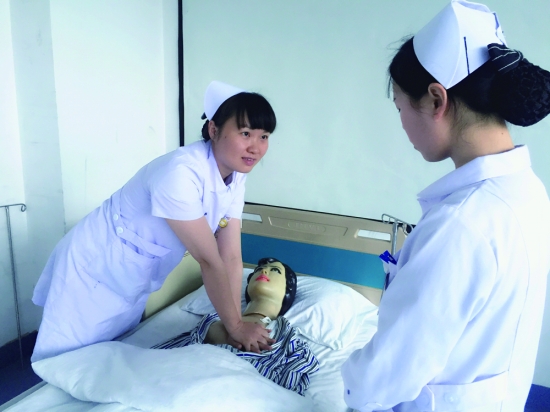 普外科护士蒋小景正在给实习生教授心肺复苏