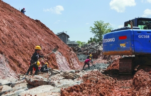 日前,花垣县民乐镇易地扶贫搬迁安置区工地,建设者在忙碌施工。该工程全面完工后,可安置当地灾区、居住环境恶劣的8个村19个自然寨建档立卡贫困户300户1256人集中入住。“十三五”期间,该县规划易地扶贫搬迁建档立卡贫困户1154户5355人,目前已完成搬迁636户2832人。