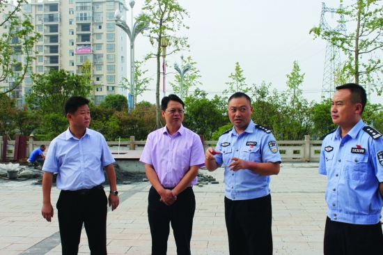 县委副书记、县长刘冬生(左二)调研公安警务机制改革。