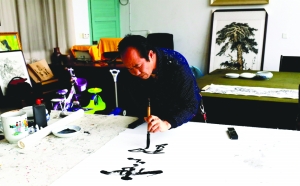 爱上书法之后,张贻庆犹如着魔一般,每每看见有人写毛笔字,他必静立旁边,凝思默虑,仔细地感受观摩和领会,还会用手下意识地比划,抽空练习。