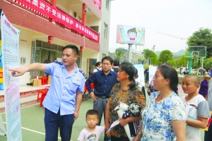 6月2日,湘西经开区开展打击非法集资宣传“进机关、进社区、进企业、进学校、进农户”五进活动。本次活动利用横幅、宣传手册、户外电子显示屏、电视等多种方式为载体,通过现场讲解非法集资的特征、手段、社会危害以及派发宣传手册等形式对辖区居民进行宣传。图为工作人员为社区居民讲解防范非法集资知识。