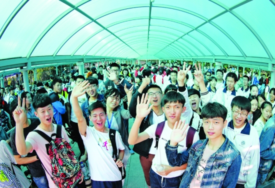 6月7日,在秦皇岛市第一中学考点,考生在等候进入考场。当日,2017年高考拉开帷幕,全国高考报名考生共940万人。 新华社记者 杨世尧 摄