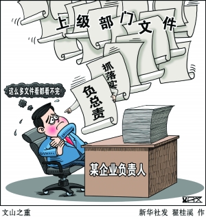 新华社记者 徐 扬 汪 伟 日前,记者在一些国企采访时了解到,有的企业有时一天能收到来自上级部门的二三十份文件,件件要求企业“一把手”对某项工作“负总责”“抓落实”。该企业负责人说,这二三十个文件有时看都看不完,何谈负总责和抓落实? 中央八项规定明确要求,要精简文件简报,切实改进文风,没有实质内容、可发可不发的文件、简报一律不发。但有的地区和部门,仍然热衷于发文件,甚至出现以文件落实文件的情况。这种文牍主义政风,是工作脱离群众、脱离实际、不负责任的表现。 上级文件太多,下级如何处理?对策之一,文件来了,改头换面直接下发;或收件者依样画葫芦,继续下发,击鼓传花。如此将“一级抓一级,层层抓落实”的要求,变成了“一级压一级,层层发文件”。此风不刹,势必造成上面盲目发文、下面敷衍了事,工作围着文件空转。 “以文件落实文件”的现象在一些地方和部门之所以屡禁不止,其原因在于一些干部不想作为、不敢担当,把文件当成自我免责的挡箭牌。“以文件落实文件”,看上去很有效率,无论应对上级检查、还是对下部署工作,只要有一纸文件在,就能说得出口、拿得出手。但工作是否落实,措施是否到位,则另当别论。 好的作风从实干中来,好的办法从实践中来。反“四风”之所以受群众拥护,关键在于其力求一个“实”字。遏止官僚主义反弹,就要在“实”字上做功夫,倡导广大干部下基层、接地气、求真知,大兴调查研究之风,大胆从实践中为改革求解,为人民谋利。 (新华社沈阳6月12日电) |