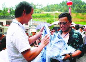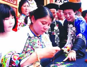 文/图 张耀成 龙继刚 蜡染百态,苗绣千姿。6月19日,花垣县双龙镇十八洞苗族文化博物馆游人如织。馆内所展出的花带、蜡染、木雕,苗绣、银饰、竹编……种类繁多、琳琅满目。一拨拨游客欣赏完馆内展品交口称赞“这简直是苗族文化传承的‘无字天书’”。深入了解,书写这“天书”的人,就是博物馆负责人彭慧芳女士。 受熏陶,12岁爱上“苗文化” “奶奶在世时,我看她织苗绣看得入迷,有时深夜都不睡觉。”40出头的彭慧芳是花垣县双龙镇十八洞苗族文化博物馆负责人,能歌善舞,热衷苗绣,人称“苗绣痴女”。她说自己12岁时,就爱上了苗族文化。经常翻弄着奶奶的苗绣,在苗衣上数丝线、找图案;在花带上描花纹、辨色彩。尽管自己读书很忙,但她仍把学苗绣当作“家庭作业”来完成。奶奶的苗衣不管大小,她总要“试试身”,躲在“闺房”对镜来个“时装秀”。有时,奶奶织苗绣门帘半途休息,她便悄悄地接着势头织几针,也不管自己的活儿精不精。奶奶多次因她的“帮忙”不得不把绣品“推倒重来”。她说:“正因为跟着奶奶‘捣蛋’,所以才有点苗绣功夫。”她自豪地说:“当时,跳舞的绣花鞋就是自己亲自绣的。” 为梦想,15年奔走“乡间路” “为了收集这双绣花鞋,我走坏了两双高跟鞋。”在苗绣产品展示区,彭慧芳指着一双丝质苗族绣花鞋讲起了她收集苗绣的故事。她说,15年来,她牺牲1200多个休息日,走村串寨收集苗绣精品,鞋子走坏了10多双。家务的担子由丈夫一人挑着,劳累和忙不过来时,丈夫也会埋怨几句,她尽量不抵嘴,表面上听从丈夫的意见,暗地里仍悄悄干她的“收集大事”。她说:“看到一件好的苗绣,就像看到一个可爱的宝贝孩子,总想拥有她。”怀着这样的爱心,她先后收集苗绣精品1200多件。祭祀群、家织布、绣花鞋、三角兜、猫儿帽、花围裙等应有尽有。为了荟萃苗绣精品,目前,已花费150多万元。家人逗趣说:“你把积蓄花光了,以后,就请苗绣给你养老吧。”她笑着说“很可能”。 搞传承,40后编就“无字书” “咚咚咚,咚咚咚……”6月18日,十八洞苗族文化博物馆在礼炮和鼓声中顺利揭牌开馆。博物馆包括苗族文化精品展示楼和制作区竹屋。彭慧芳说,为建设这个博物馆,她已投入资金80多万元。当问及她的办馆宗旨时,她由衷地说:“收集了十多年,积累了千余件,没有个地方展示出来,也实现不了保护、传承和发展苗族文化的初衷。”抱着这个想法,作为博物馆负责人的她果断作出“双免”举措———免费参观、免费展示。力图将博物馆办成“公益性博物馆”。开馆当日,当地苗族苗绣传承人、银饰传承人、蜡染传承人、木雕传承人、苗族竹编传承人等30多位苗族文化传承人的精品得到展示,万余名游客实现免费参观。苗族蜡染非遗传承人石杰忠开心地告诉笔者:“有了博物馆展示,我的苗族蜡染作品有更多人青睐了。” |