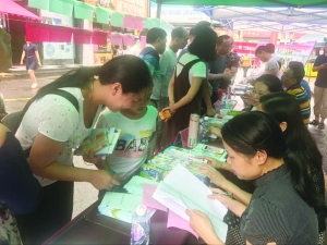 6月23日,吉首市商业城,在州市国土资源局设立的“全国土地日”宣传摊点一端,两位市民正在答题兑奖,另一端是几位市民正在就关心的内容进行咨询。今年6月25日是第二十七个全国土地日,宣传主题是“建设美丽国土,共筑生态文明”。当天上午,虽然大雨渐歇,但前来宣传摊点咨询的市民一波接一波,宣传摊点应接不暇。