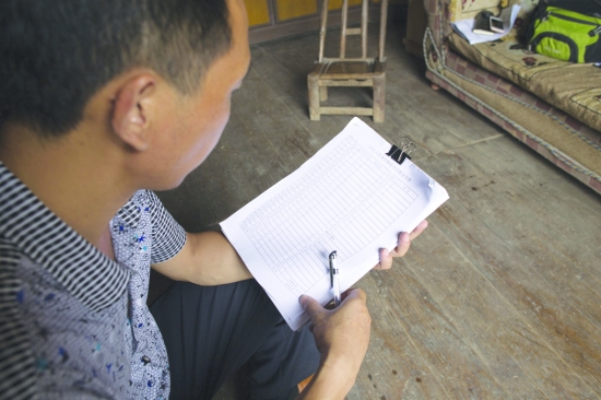 杨帆翻看三联村阶梯排序情况。 彭 宁 摄