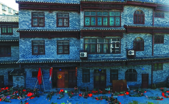 ▲ 7月2日,洪水渐渐退去,泸溪县浦市大堤安然无恙,奋战通宵的州武警战士们精疲力竭,在大堤旁席地而睡。 本报记者彭 伟 刘 炜 摄