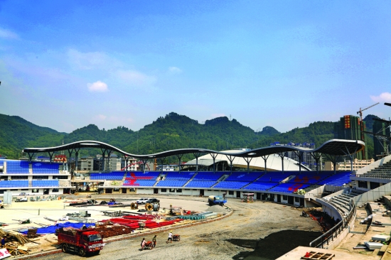 建设中的州文化体育会展中心。 胡大湘 刘 博 摄