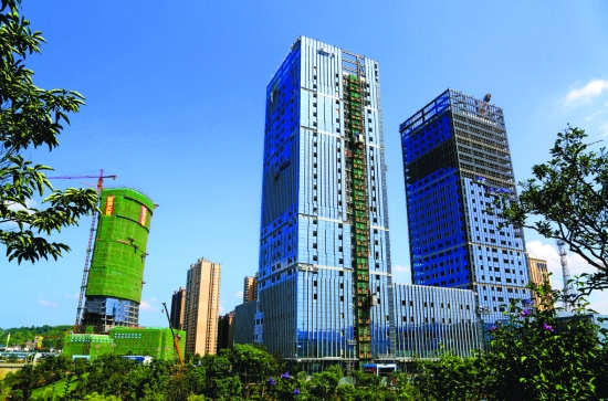 金融中心与封顶的湘西皇冠假日酒店遥相呼应。 胡大湘 刘 博 摄