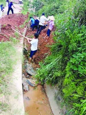 受前段时间强降雨影响,花垣县兄弟河引水工程灌区渠道严重损坏,大小支渠损坏170多处。连日来,该县水利局组织抢险抢修队,县兄弟河引水工程管理所干部职工全员上阵,花垣镇党委政府积极协调各村工作,形成灾后重建合力,对损毁渠道进行抢修,确保灌区花垣镇30多个村(居)生产生活正常用水。图为7月7日抢修现场。