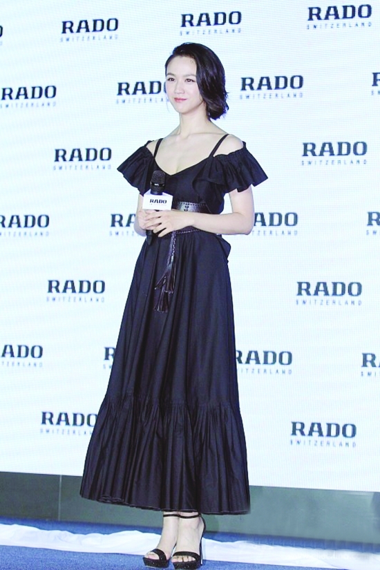 如果手臂也不算很纤细,又放不下对吊带装的执念,那么一定要给手臂上加点遮盖。 汤唯身穿黑色褶皱吊带裙,搭配黑色亮钻厚水台高跟凉鞋,是文艺女神一贯喜爱的低调大气风格。