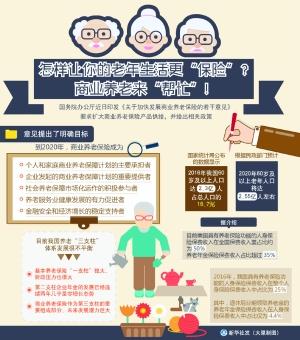 意见提出了明确目标:到2020年,商业养老保险成为个人和家庭商业养老保障计划的主要承担者、企业发起的商业养老保障计划的重要提供者、社会养老保障市场化运作的积极参与者、养老服务业健康发展的有力促进者、金融安全和经济增长的稳定支持者。