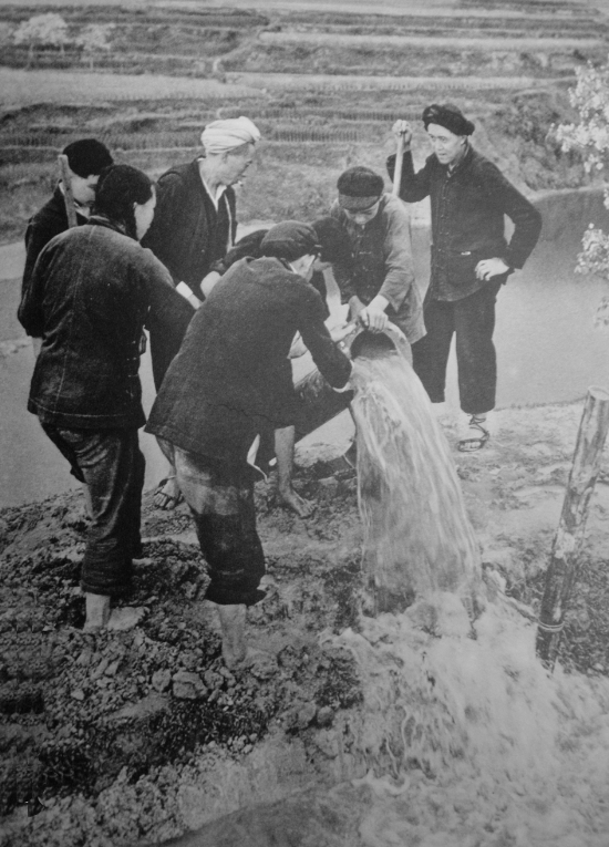 1958年,龙山县石羔乡正南大队安装抽水机灌良田。