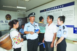 7月12日,吉首市公安局乾州派出所民警正在办证厅给群众讲解户籍办理流程常识。近三年来,该所以增强辖区群众安全感和满意度为目标,采取延时服务、预约服务、上门服务等多种便民利民措施,现场宣传安全防范知识和户籍业务等知识,截至6月份,为辖区群众办证2200人次。今年5月,该所被公安部评为“全国优秀公安基层单位”。