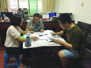 7月16日,吉首市机关社保局在职党员在该市峒河街道向阳社区办公室填报服务意向,并就填报意向对社区民众进行点对点服务。