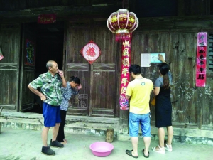 5月17日,复兴镇卫生院医生为复兴村村民粘贴“家庭医生签约服务信息卡”。