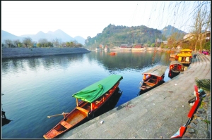 而如今的边城的上渡口处,拉渡的老人尽管不是翠翠的爷爷,少女不是翠翠,喊渡声不是二佬的声音,但是这里有老人拉渡,有少女过渡,有黄狗跟班,还有喊渡的声音。当你看着船头某一位清纯纯笑着的姑娘,看着悠悠滑行的渡船,你的神思定会错乱,倏然间似乎回到了翠翠的凄美故事里———一生爱上一个人,却因世事的跌宕,在边城的渡口痴痴地等。这一等,翠翠也不知道将自己等成了别人的归人,还是等成了别人的过客?而当你用手搅动渡口那软软的水,那凉凉的水,倏然间又回到了现实里。