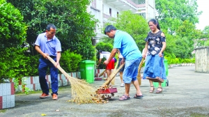 7月13日,花垣县第四中学近20名教师返校清洁校园卫生。这是该校党支部带头落实美丽校园建设工作的一个缩影。