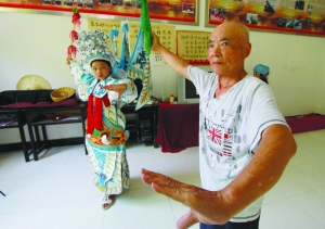 7月16日,花垣县边城镇长老坟村汉剧传习所里,孩子们在杨胜先老人的指导下学习汉剧。 2016年以来,该村建立了边城汉剧传习所,由湘西州汉剧“非遗”传承人杨胜先老人义务执教,周末和假期,孩子们前来学习汉剧表演,以传承传统文化。